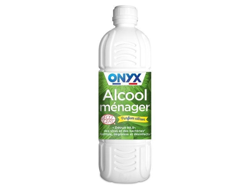 Nom du produit : Alcool ménagerType de produit : LiquideMarque du produit : ONYXContenance : 1LConseil d'utilisation : Pour nettoyer et dégraisser : Appliquer sur la surface ou l'objet à nettoyer et dégraisser, laisser agir quelques instants puis frotter avec un chiffon propre. Renouveler l'opératio