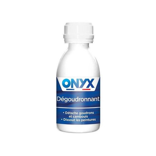 - Conseil d'utilisation : Avant toute utilisation, lisez l'étiquette et les informations concernant le produit. Pour détacher goudrons et cambouis sur tissus, métaux, carrosseries et supports peints: Retirer l'excédent puis tamponner la tâche avec un chiffon imprégné de Dégoudronnant ONYX. Dans tous les cas, faire un essai préalable sur une partie peu visible pour vérifier la compatibilité avec le support. Ne pas jeter les résidus à l'égout ou dans le milieu naturel.