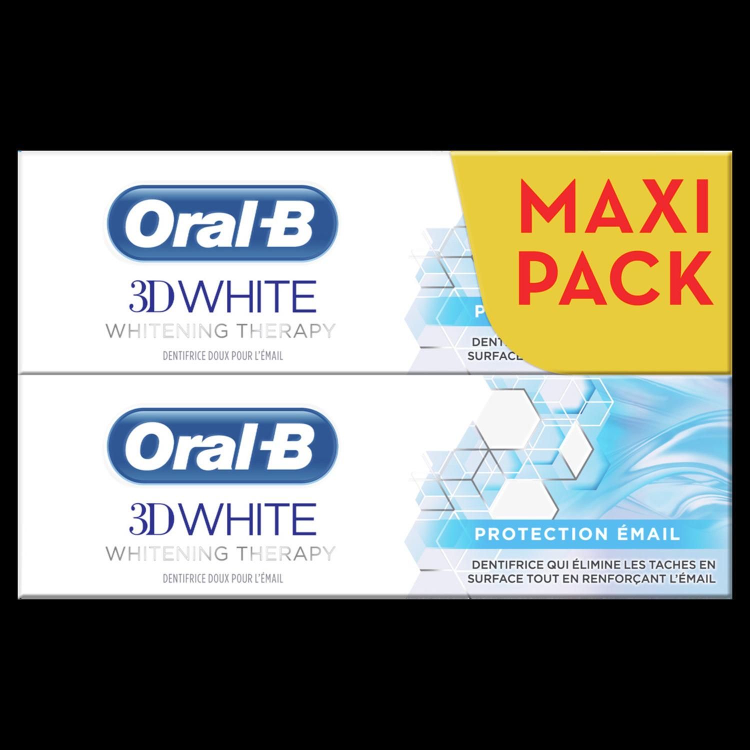 La gamme de soin Oral-B 3D White Whitening Therapy est formulée avec un complexe minéral actif. Sa formule qui protège l’émail rend les dents plus blanches pour un sourire éclatant, en éliminant les taches en surface et en renforçant l’émail des dents.