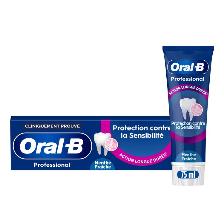 Oral-B Professional Protection Sensibilité Menthe Fraîche a été cliniquement prouvé : il offre une protection durable aux dents sensibles, avec une utilisation continue. La technologie anti-bactérienne unique d'Oral-B à base d'un complexe de fluorure stanneux et des agents actifs apaisants crée un bouclier protecteur pour protéger efficacement les dents sensibles, même entre les brossages, tout en offrant une sensation de fraîcheur pendant et après le brossage. Convient aux dents sensibles. Dentifrice Quotidien