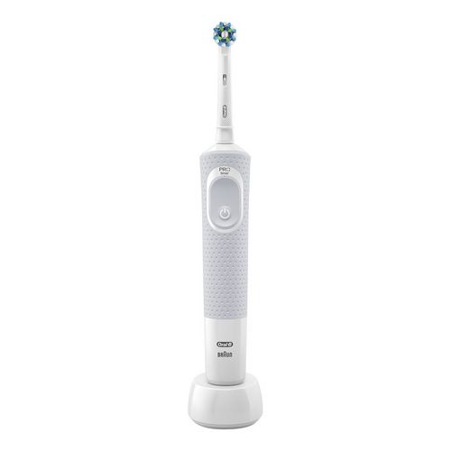 Le brosse à dents Oral-B Vitality 100 CrossAction est équipé de poils angulés qui permettent de capturer et d'éliminer les particules alimentaires même dans les zones les plus difficiles d'accès. Cette technologie CrossAction est reconnue pour sa capacité à réduire la plaque dentaire et à prévenir les caries. Le design ergonomique du manche facilite une prise en main confortable, permettant un brossage efficace sans fatigue.