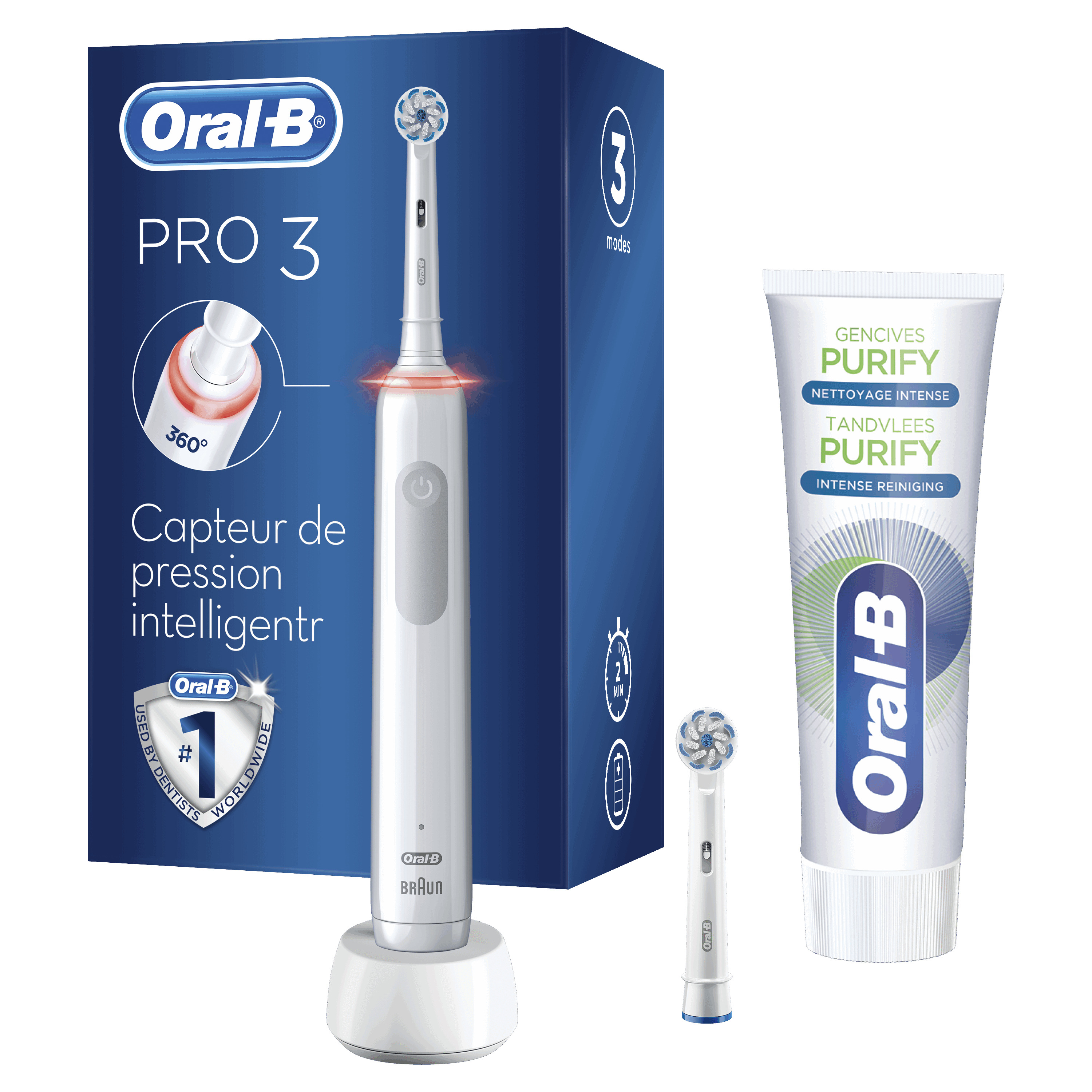 Bénéficiez d'un brossage et d'une hygiène dentaire optimale avec la brosse à dents électrique Oral B Pro 3800 et ses 3 modes de brossage ; blanchiment, douceur et propreté qui vous garantissent un résultat efficace.