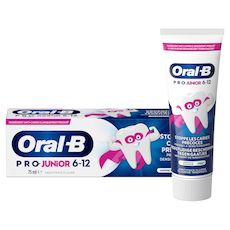 Le dentifrice Oral-B Pro Junior est spécialement conçu pour les enfants entre 6 et 12 ans. Il a été développé en collaboration avec des dentistes pour aider à prévenir les caries en protégeant les dents contre les acides et sucres quotidiens. Il contient un niveau de fluorure adapté à l'âge et à l'arôme de menthe douce qui aide à protéger l'émail.