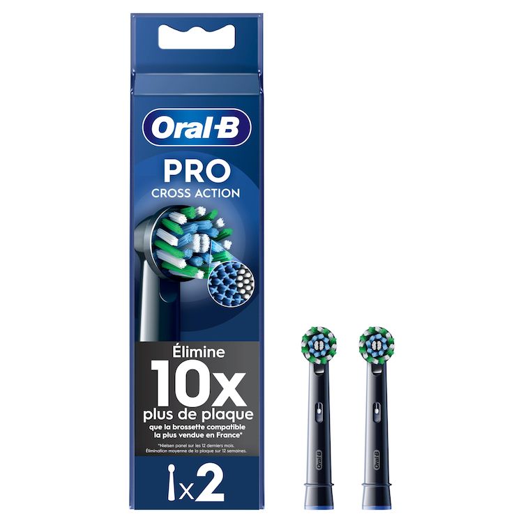 Oral-B Pro Cross Action est dotée de plus de 2 200 filaments obliques pour éliminer jusqu'à 100 % de plaque bactérienne pour des dents plus propres et des gencives plus saines qu'avec une brosse à dents manuelle. Les brossettes Oral-B authentiques sont dotées de nouveaux filaments en forme de X qui nettoient les zones inaccessibles aux filaments arrondis. Les filaments passent du vert au jaune vous rappelant de changer de brossette pour conserver une efficacité de nettoyage optimale. Compatibilité garantie avec toutes les brosses à dents électriques rechargeables Oral-B à l'exception des brosses à dents Pulsonic et iO.