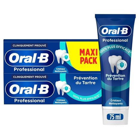 Il a été cliniquement prouvé que le dentifrice Oral-B Professional Prévention du Tartre Cristaux Nettoyants est jusqu'à 100 % plus efficace pour prévenir le tartre qu'un dentifrice au fluor ordinaire. La technologie anti-bactérienne unique d'Oral B à base d'un complexe de fluorure stanneux forme un bouclier protecteur pour une protection totale avec des cristaux de nettoyage qui offre une expérience de nettoyage en profondeur et du zinc actif pour aider à réduire et à prévenir la réapparition de la plaque bactérienne pendant 24 heures lorsqu'il est utilisé deux fois par jour
