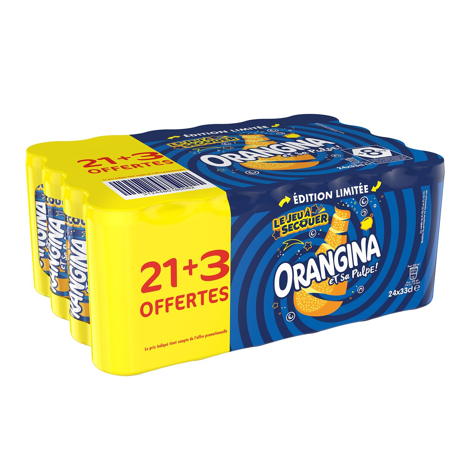 Ingrédients : Eau gazéifiée, jus d'orange et autres agrumes à base de concentrés 11% (orange 9%, mandarine, pamplemousse), sucre, pulpe 2% (orange, mandarine), acidifiant : acide citrique, extrait de zeste d'orange, arôme naturel d'orange.