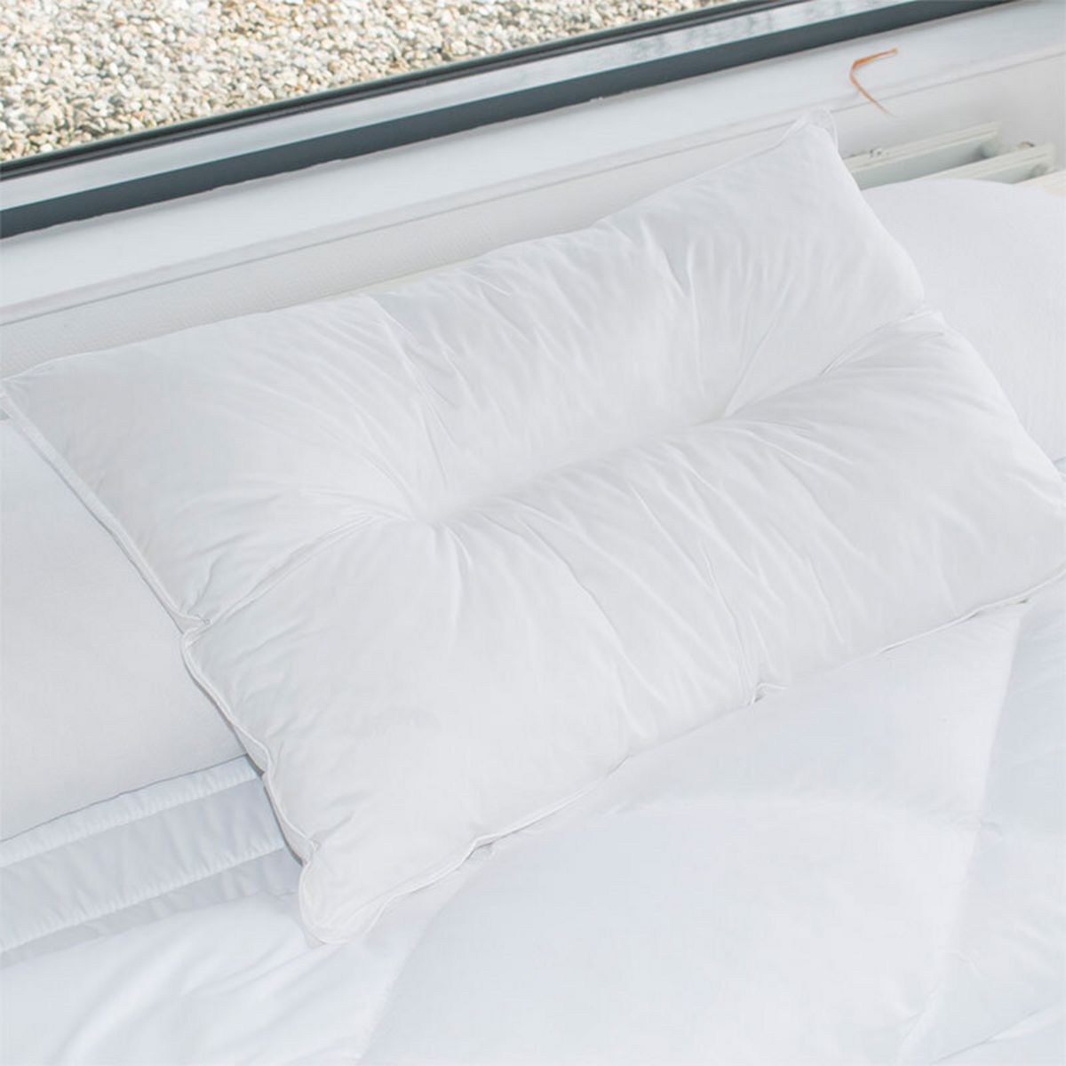 Oreiller 45 x 70 cm à mémoire de forme ergonomique - Couture centrale créant un position ergonomique pour soulager les cervicales et la liaison nuque / épaule - Lavage à 40°C cycle délicat - Fabrication Française.