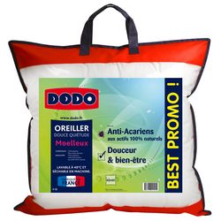 BEST PROMO ! L'oreiller DODO DOUCE QUIÉTUDE est confectionné dans un tissu 100% polyester très doux. Il est traité anti-acariens aux actifs 100% naturels : traitement sûr et efficace, pour des nuits saines et sereines ! Son garnissage 100% Polyester est creux, pour une bonne aération. Il est aussi s
