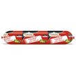 Viandes séparées mécaniquement de poulet halal 49%, gras de poulet halal 23%, eau, olives 5% (olives, paprika, sel, E509), fécule de pommes de terre, farine de FROMENT, protéines de SOJA, sel, amidon modifié de maïs, arôme, plantes aromatiques et épices, amidon de FROMENT, stabilisateurs : E450-E451, sirop de glucose, exhausteur de goût : E621, antioxydants : E301-E331, conservateurs : E325-E262 et E250, colorant : E150.