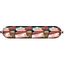 Viandes séparées mécaniquement de poulet halal 49%, eau, gras de poulet halal 23%, farine de FROMENT, olives 5% (olives, paprika, sel, E509), protéines de SOJA, sel, amidon modifié de maïs, arôme, plantes aromatiques et épices, amidon de FROMENT, stabilisateurs : E450-E451, sirop de glucose, exhausteur de goût : E621, antioxydant : E301-E331, conservateurs : E325-E262 et E250.