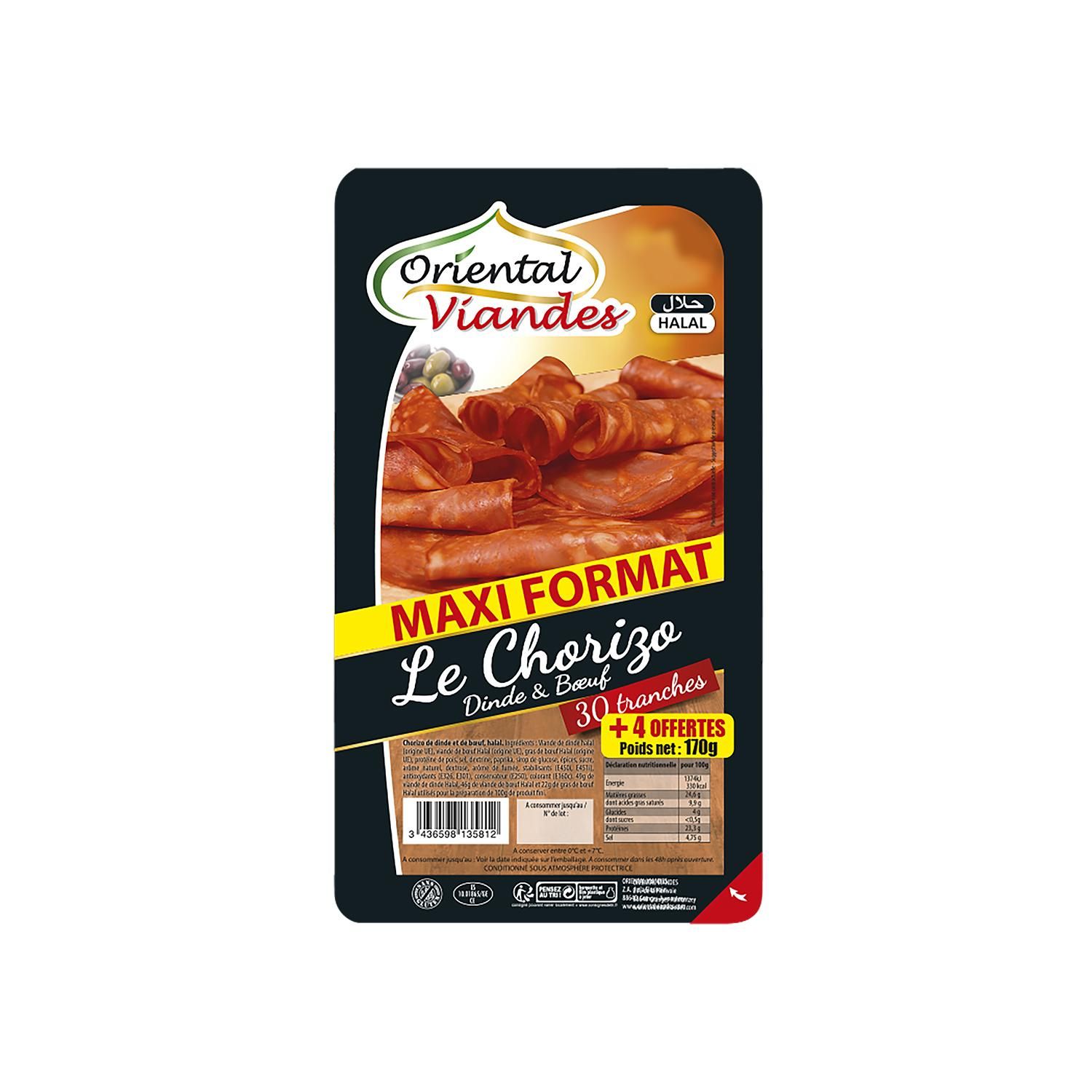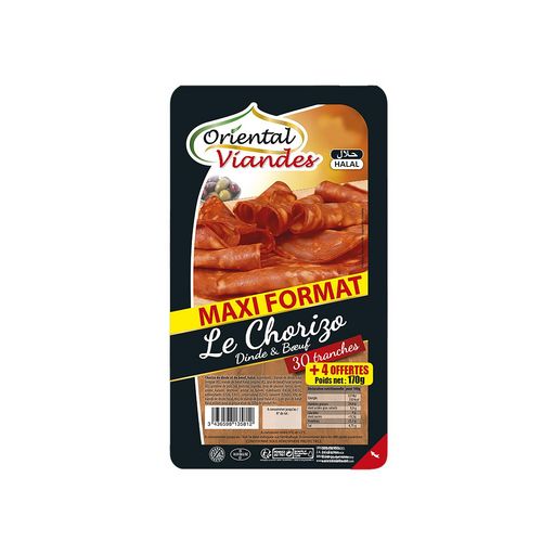 Chorizo boeuf et volaille halal 30 tr +4 gratuites 170g Oriental Viandes