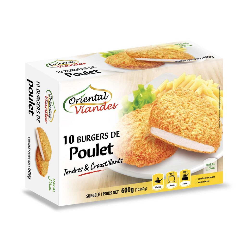 Burger de poulet cuit pané surgelé halal 600g (10x60g) Oriental Viandes