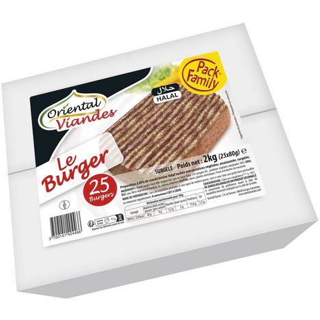 Le burger de boeuf surgelé halal 20% MG (25x80g) 2kg Pack Family Oriental Viandes
