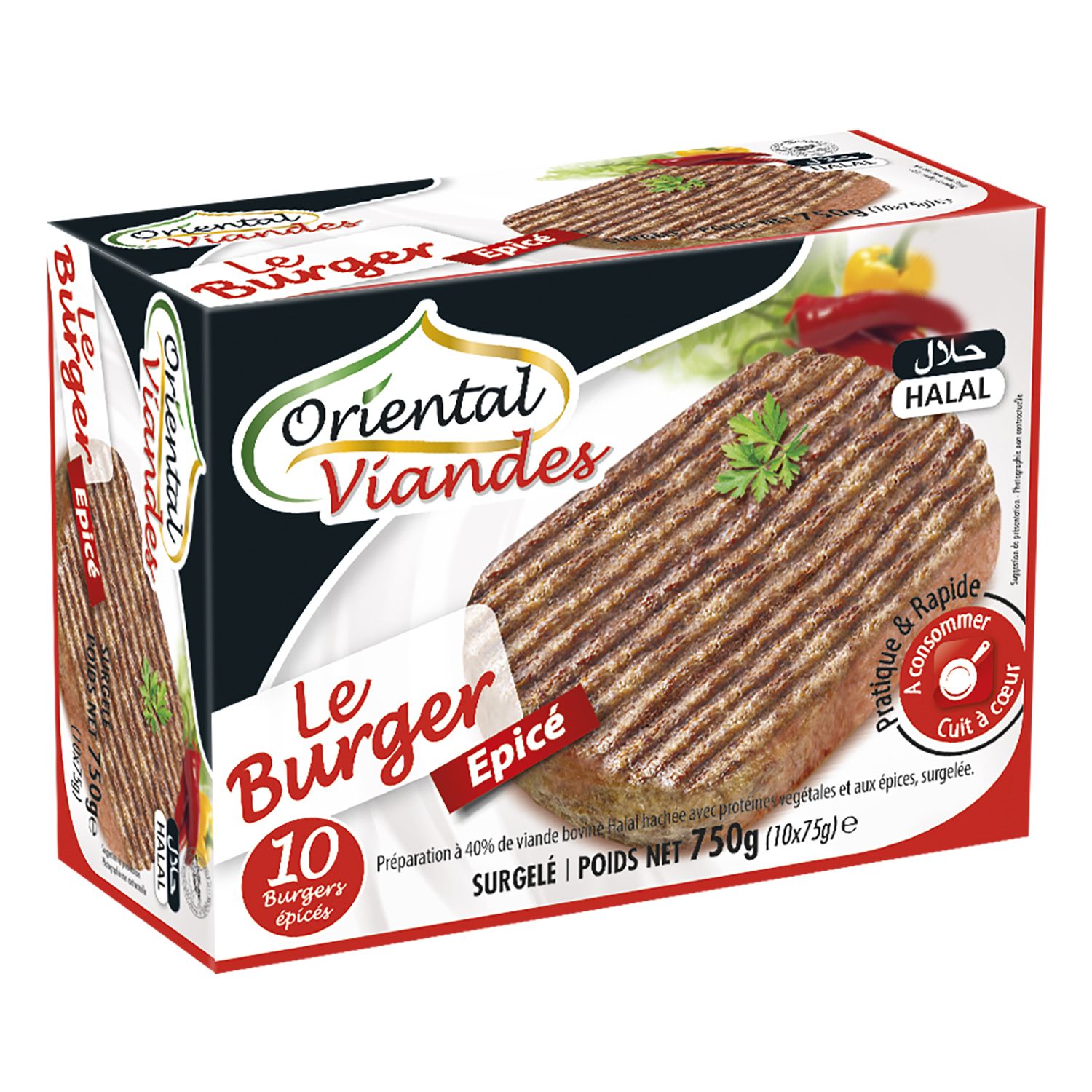 Le burger de boeuf épicé surgelé halal 20% MG (10x75g) 750g Oriental Viandes