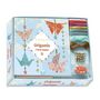 Un livre de 144 pages comprenant 10 modèles d'origamis à reproduire et 58 feuilles de papier. Des bâtonnets en bois pour construire une suspension murale. deux lots de perles différentes. Des bandelettes de papier pour créer des petites étoiles en papier.