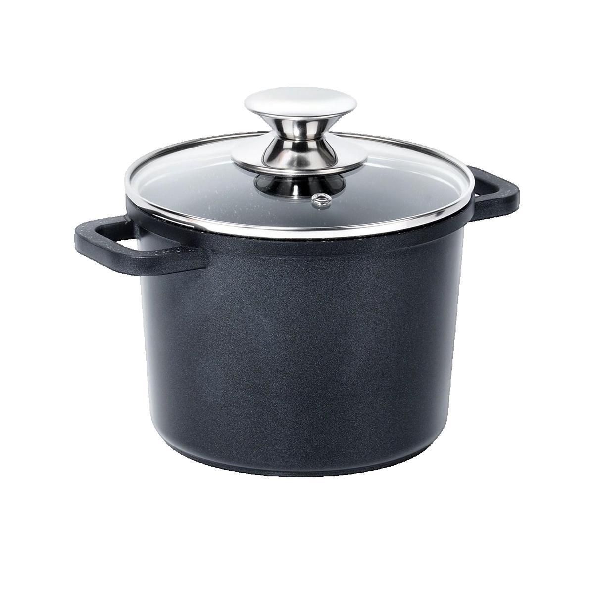 Découvrez la casserole haute Orion en aluminium équipée d'un revêtement antiadhésif PFLUON GRANIT de haute qualité pour une cuisson facile et sans accroche. Cette casserole a une capacité de 2,2 litres, parfaite pour cuire, faire frémir ou rôtir vos plats. Elle est munie d'un couvercle en verre avec évent pour un contrôle optimal de la cuisson. Sa finition noire élégante s'intègre parfaitement dans votre cuisine. Compatible avec tous les types de plaques de cuisson, y compris l'induction, elle est également lavable au lave-vaisselle pour un entretien simplifié. Exempte de PFOA et PTFE, cette casserole allie performance et sécurité pour des repas savoureux.