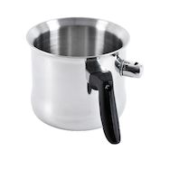 Cette casserole Orion est conçue pour faire bouillir le lait sans brulure grâce à sa conception à double paroi. Sa capacité de 2,5 litres est idéale pour préparer du chocolat, des sauces et d'autres préparations culinaires. Fabriquée en acier inoxydable avec une poignée en plastique noir, elle est p