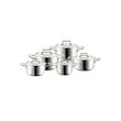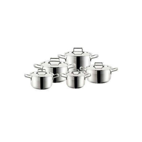 Découvrez l'ensemble de casseroles Orion Anett en acier inoxydable 18/10, composé de 10 pièces de haute qualité. Ce set offre une excellente répartition de la chaleur grâce à son fond accuthermique. Compatible avec tous types de feux, y compris induction, il peut également être utilisé au four. Rési