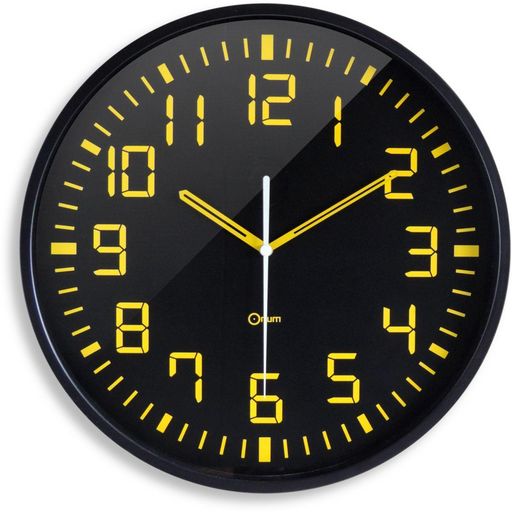 Particularité | Horloge silencieuse grâce aux mouvements Quartz Sweep à balayage automatique. Offre une excellente lisibilité même de loin grâce à son cadran noir avec chiffres et ses aiguilles jaune. | |