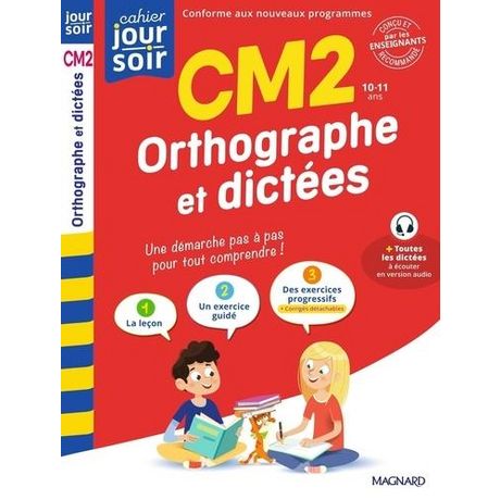 Pour revoir toutes les bases de l'orthographe au CM2 - Une démarche progressive et efficace pour consolider son orthographe en français CM2 : l'écriture des sons complexes, les homophones, les accords, les participes passés 1. Des leçons synthétiques pour retenir l'essentiel 2. Des exercices guidés pour bien comprendre le raisonnement 3. Des exercices variés et progressifs pour s'entraîner - Des mémentos visuels sur l'accord sujet-verbe et l'accord du participe passé - Le + : des QR codes pour toutes les notions du programme, pour s'évaluer et progresser de manière ludique : - des dictées audio - des quiz numériques interactifs - Le + pour les parents : un cahier central détachable avec tous les corrigés