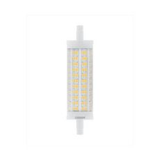 Economies grâce à la technologie LED et longue durée de vieAmpoule LED OSRAM tubulaire, culot R7s, consomme 17,5W équivalent 150W, 118 mm, 2452 lumens, 118mm, lumière blanc chaud 2700K, finition claire, intensité variable, éclairage instantané, durée de vie 25000h, garantie 4 ans, alte énergétique E