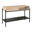 Découvrez cette très belle console en mélaminé et métal. Elle prendra place dans votre intérieur, aussi bien avec un style contemporain que industriel.Informations sur la console mélaminé et métal:Couleurs : noir et naturelDimensions : L. 100 x P. 32 x H. 80 cmComposition : métal, bois mélaminéPoids