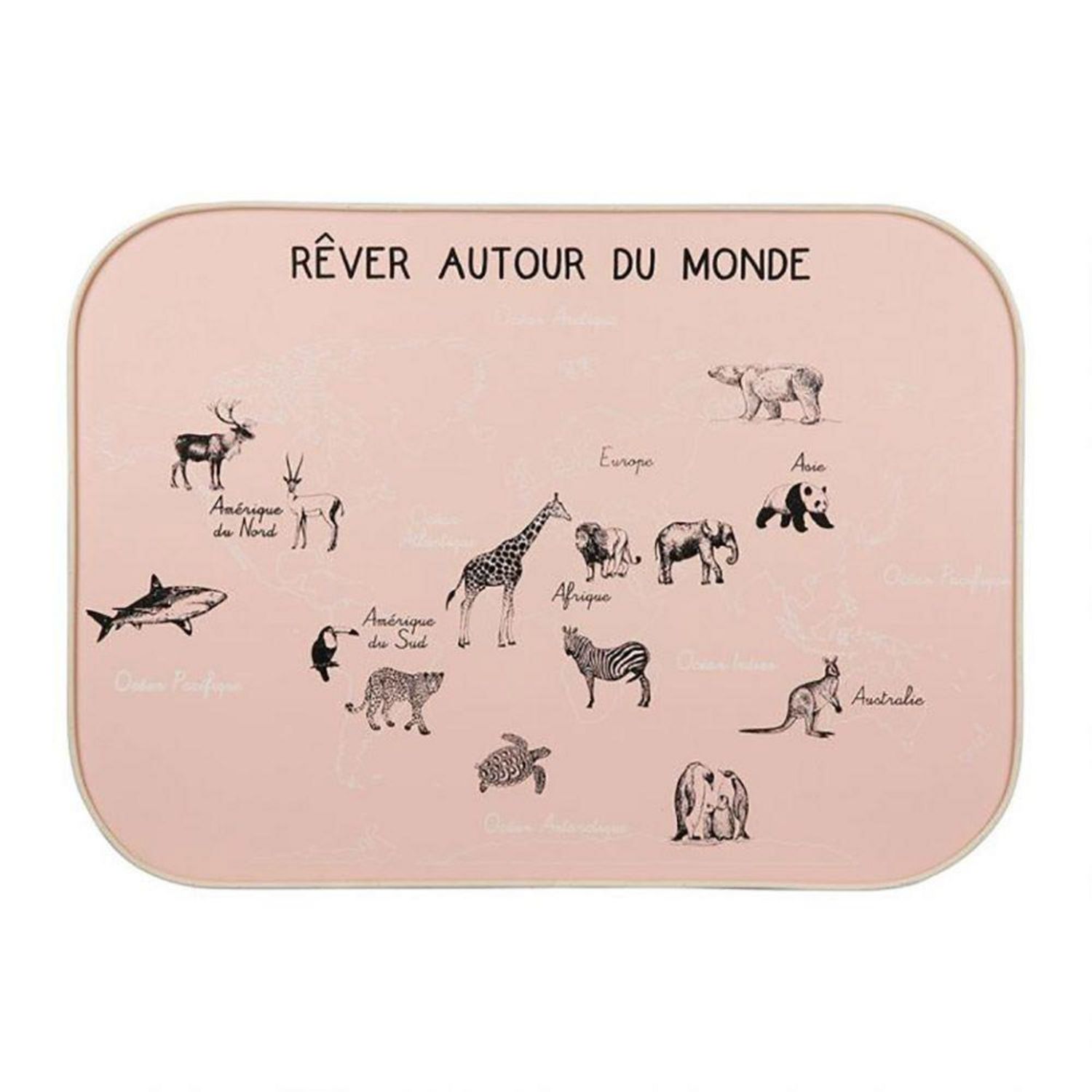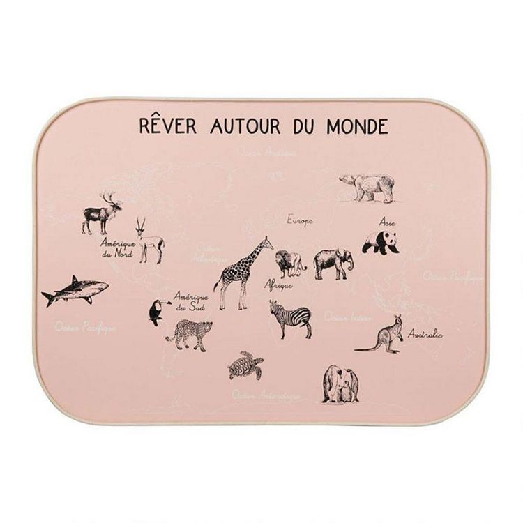 Décoration murale carte du monde rose 70x50 cmTrès jolie décoration murale carte du monde coloris rose au dessin d'animaux de la planète. Ce joli tableau en MDF de dimensions 50x70 cm ornera le mur de la chambre de votre enfant d'une agréable carte du monde.Informations sur la décoration murale cart