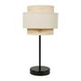 Lampe abat-jour papier rotin 3 niveaux beigeCréez une atmosphère lumineuse pratique et originalement vintage grâce à la lampe abat-jour papier rotin 3 niveaux beige. Cette lampe avec son abat-jour façon rotin apportera du renouveau à votre éclairage avec son look élégant.Informations sur la lampe abat-jour papier rotin 3 niveaux :Composition : métal, papierDimensions : D. 20 x H. 37 cmDouille : E14 (ampoule non fournie)Poids : 710 g