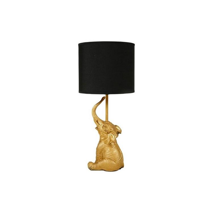 Lampe éléphant résine doréeCréez une atmosphère lumineuse pratique tout en originalité grâce à la lampe éléphant en résine dorée. Cette lampe exotique chic apportera du renouveau à votre éclairage avec son look or.Informations sur la lampe éléphant résine dorée :Composition : résineDimensions : D. 20 x H. 46 cmDouille : E27 Max. 60W (ampoule non fournie)Poids : 1 kg