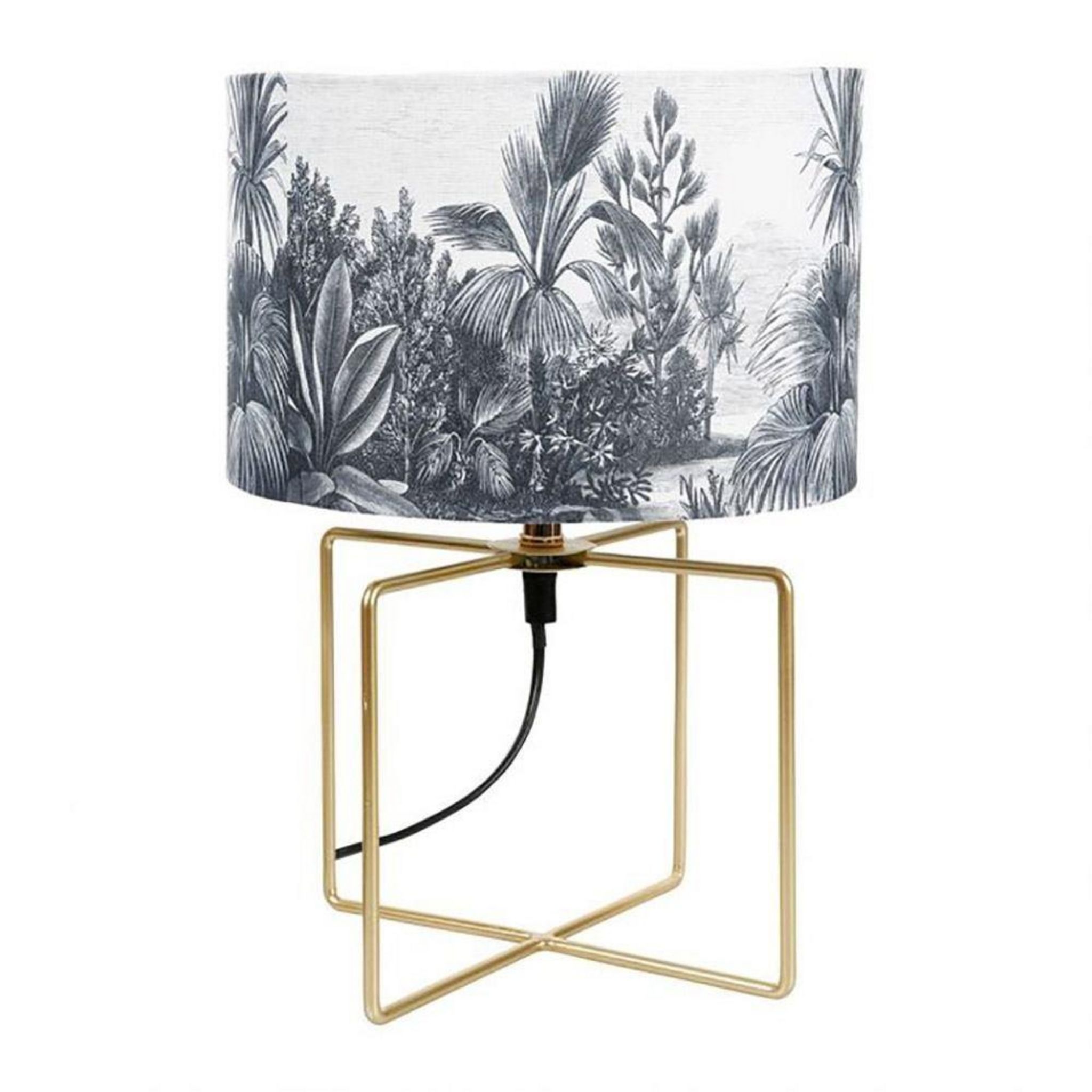 Lampe pied métal doré abat-jour gravureCréez une atmosphère lumineuse pratique et chic grâce à la lampe avec pied en métal doré et abat-jour imprimé gravure. Cette lampe aux allures vintage chic avec son abat-jour façon gravure apportera du renouveau à votre éclairage avec son look élégant.Informations sur la lampe pied métal doré abat-jour gravure :Composition : métalDimensions : D. 25 x H. 35 cmDouille : E27 Max. 40W (ampoule non fournie)Poids : 1,12 kg