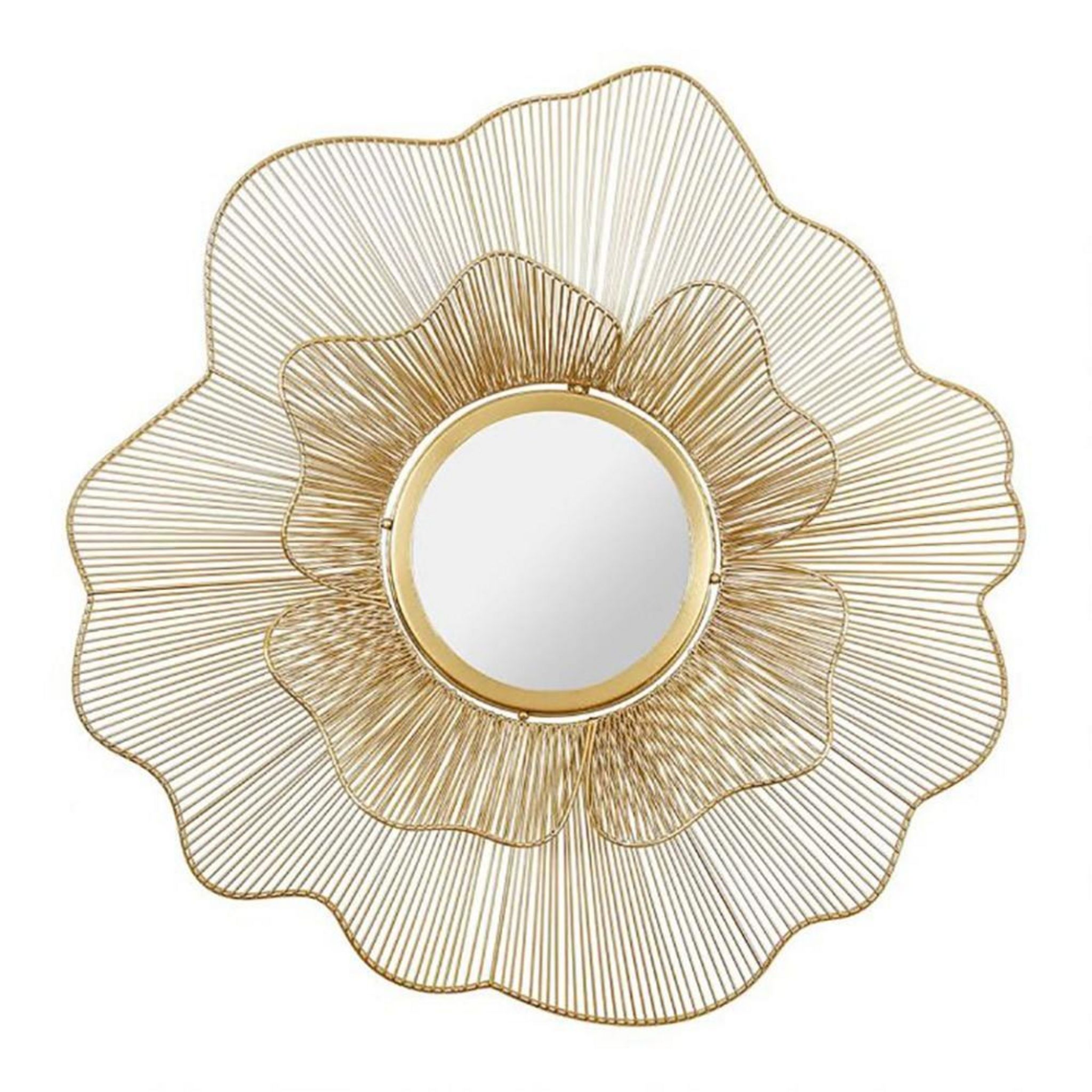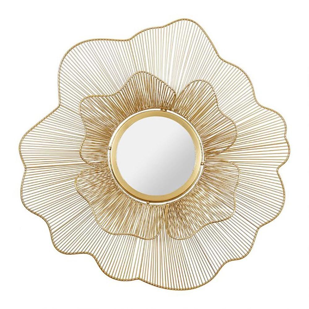 Miroir fleur métal doré D70Look chic or pour ce miroir fleur en métal doré qui embellira votre intérieur. Apportez du rêve grâce à ce grand et joli miroir doré de 70 cm de diamètre.Caractéristiques du miroir fleur métal doré :Couleur : orDimensions : D. 70 cmMatière : métal, verrePoids : 1,74 kg