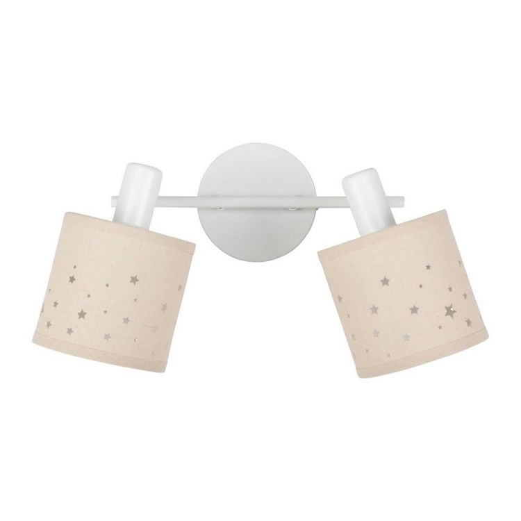 Créez une ambiance tamisée avec la rampe 2 spots orientables en lin beige et métal. Cette applique originale pleines d'étoiles apportera du renouveau à votre éclairage avec ses abat-jour en lin.Informations sur la rampe 2 spots lin beige:Composition : lin, métalDimensions : 30 x 17 cmSpots orientablesDouilles : 2x E14 Max. 2x20W (ampoules non fournies)Usage intérieur exclusivement.