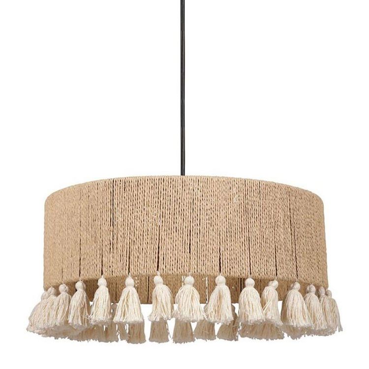 Voici une belle suspension cylindrique en métal et coton Charlotte coloris noire et beige dans un style bohème de 35 cm de diamètre.C'est incroyable comme une suspension peut faire toute la différence. Un éclairage judicieusement étudié créé des espaces adaptés à toutes les activités. De plus, l'amb