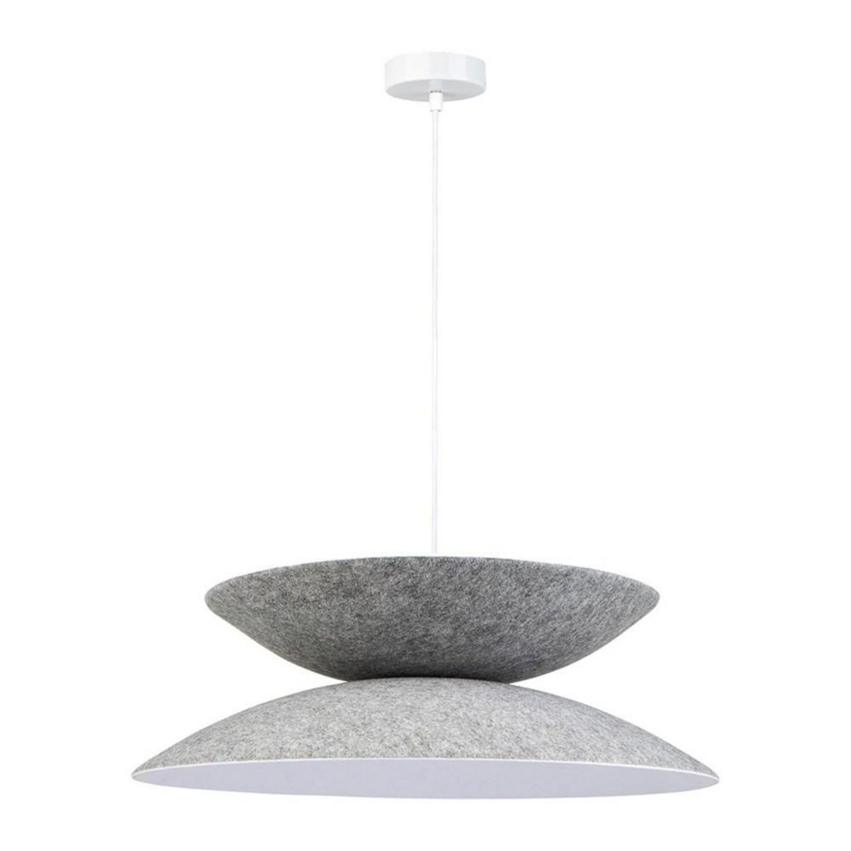 Pour une décoration originale et tendance, découvrez cette très jolie suspension en feutre de 46 cm de diamètre au coloris gris et blanc.C'est incroyable comme une suspension peut faire toute la différence. Un éclairage judicieusement étudié créé des espaces adaptés à toutes les activités. De plus, l'ambiance peut changer tous les soirs - d'une simple pression sur un interrupteur.Informations sur la suspension grise et blanche en feutre :Dimensions : diamètre 46 cm x H. 15 cmMatière: feutrineCouleur: gris et blancCouleur du câble: blancPoids : 0.870 KgDouille E27 Max 40 WAmpoule non fournieLuminaire compatible avec des ampoules de toutes altes d'énergie