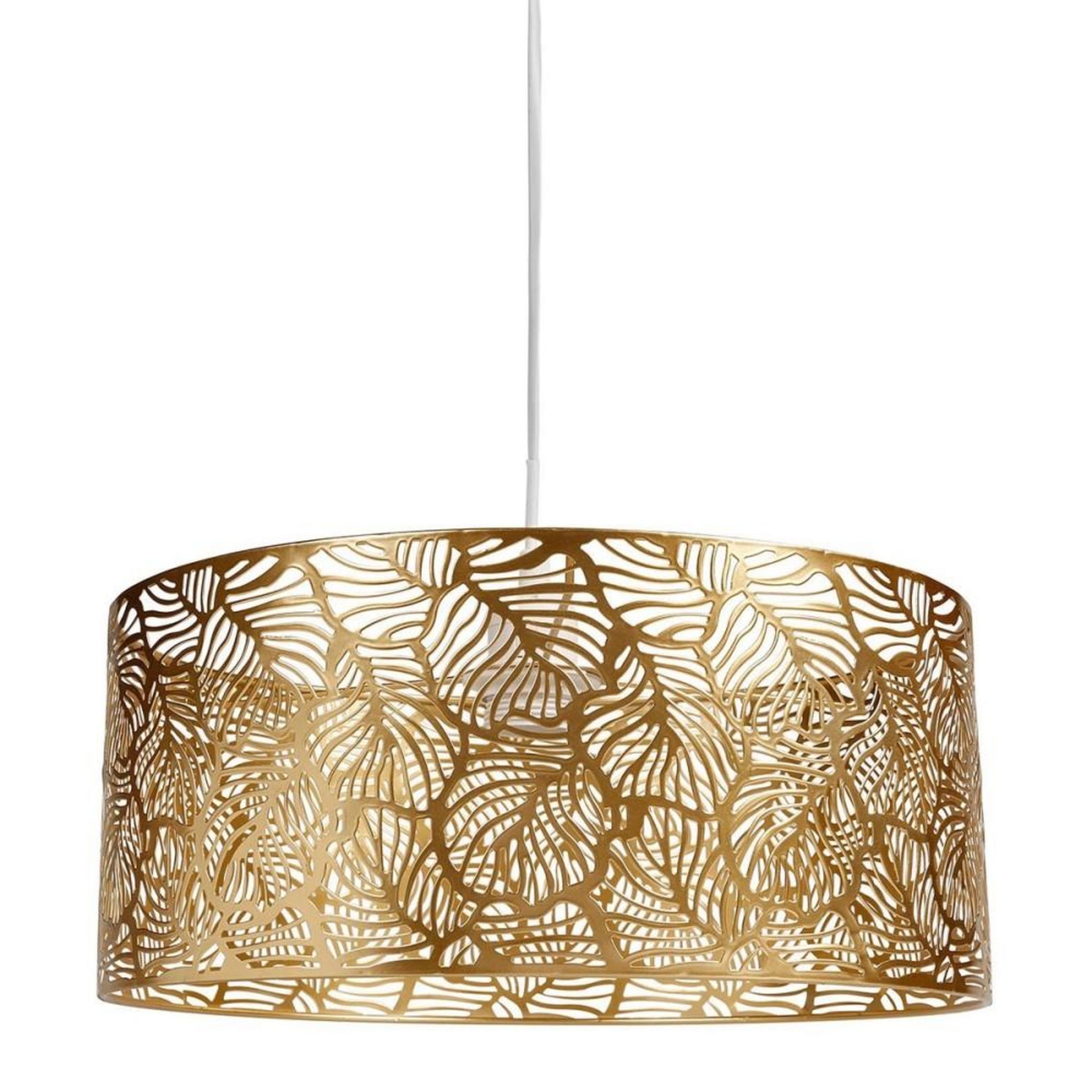 Suspension métal ajouré doré Calathéa D35Découvrez cette superbe suspension en métal ajouré doré Calathéa dans un style ajouré de grande dimension avec ses 35 cm de diamètre pour 15 cm de hauteur.C'est incroyable comme une suspension peut faire toute la différence. Un éclairage judicieusement étudié créé des espaces adaptés à toutes les activités. De plus, l'ambiance peut changer tous les soirs - d'une simple pression sur un interrupteur.Informations sur la suspension en métal ajouré doré Calathéa D35 :Matière : métalDimensions : D. 35 x H. 15 cmLongueur avec câble : 120 cmPoids : 1 kgDouille E27Ampoule non fournieLuminaire compatible avec des ampoules de toutes altes d'énergie