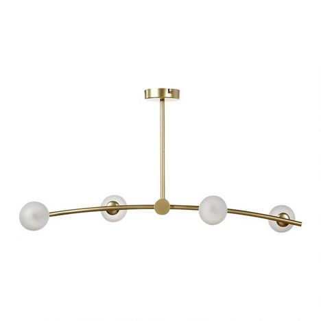 Suspension métal doré PleïadesDécouvrez cette très moderne suspension plafonnier en métal Pleïades coloris doré dans un style légèrement courbé avec 4 spots.C'est incroyable comme une suspension peut faire toute la différence. Un éclairage judicieusement étudié créé des espaces adaptés à toutes les activités. De plus, l'ambiance peut changer tous les soirs - d'une simple pression sur un interrupteur.Informations sur la suspension en métal doré Pleïades :Dimensions : L. 80 x H. 27 cmCordon : 150 cmPoids : 1,100 kgDouille G9 Max 28WAmpoules non fourniesLuminaire compatible avec des ampoules de toutes altes d'énergie
