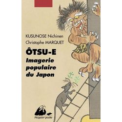 Les Ôtsu-e sont des peintures populaires de style naïf, à caractère satirique ou moral, qui furent produites du XVIIe au XIXe siècle par des artisans anonymes, dans des villages près d'Ôtsu, non loin de Kyôto. Elles disparurent avec la modernisation du Japon et seules quelques centaines purent être sauvées, grâce à des artistes et à des collectionneurs. En 1920, un jeune graveur de sceaux, Kusunose Nichinen (1888-1962), conscient de la disparition de ce témoignage unique de la culture populaire, décida d'en réaliser une série de gravures sur bois. Cet ouvrage reproduit 78 d'entre elles, accompagnées de commentaires sur leur signification et d'une introduction à l'histoire de cette imagerie japonaise méconnue.