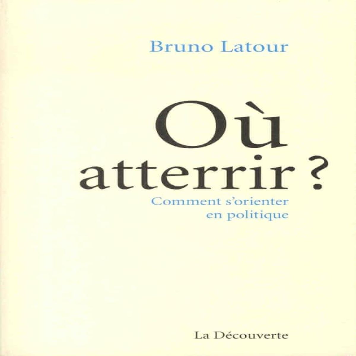 Peut-on continuer à faire de la politique comme si de rien n'était, comme si tout n'était pas en train de s'effondrer autour de nous ? Dans ce court texte politique, Bruno Latour propose de nouveaux repères, matérialistes, enfin vraiment matérialistes, à tous ceux qui veulent échapper aux ruines de nos anciens modes de pensée. Cet essai voudrait relier trois phénomènes que les commentateurs ont déjà repérés mais dont ils ne voient pas toujours le lien - , et par conséquent dont ils ne voient pas l'immense énergie politique qu'on pourrait tirer de leur rapprochement. D'abord la dérégulation qui va donner au mot de globalisation un sens de plus en plus péjoratif , ensuite, l'explosion de plus en plus vertigineuse des inégalités , enfin, l'entreprise systématique pour nier l'existence de la mutation climatique. L'hypothèse est qu'on ne comprend rien aux positions politiques depuis cinquante ans, si l'on ne donne pas une place centrale à la question du climat et à sa dénégation. Tout se passe en effet comme si une partie importante des altes dirigeantes était arrivée à la conclusion qu'il n'y aurait plus assez de place sur terre pour elles et pour le reste de ses habitants. C'est ce qui expliquerait l'explosion des inégalités, l'étendue des dérégulations, la critique de la mondialisation, et, surtout, le désir panique de revenir aux anciennes protections de l'Etat national. Pour contrer une telle politique, il va falloir atterrir quelque part. D'où l'importance de savoir comment s'orienter . Et donc dessiner quelque chose comme une carte des positions imposées par ce nouveau paysage au sein duquel se redéfinissent non seulement les affects de la vie publique mais aussi ses enjeux .
