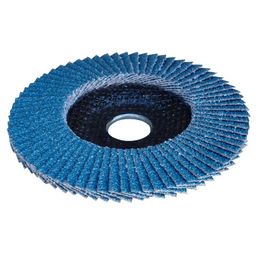 1 disque à lamelles pour meuleuse - 115 mm grain 120Abrasif zirconium. Très longue durée de vie. Alésage 22,2 mm. Utilisable sur le bois, le plastique, les métaux doux et inox. Montage sur meuleuses.