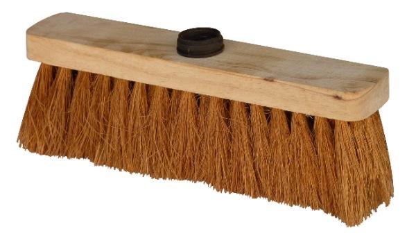 Balai coco. Emmanchement douille vissante Ø 28 mm. Monture en bois, brosse en fibres végétales de coco.Pour toutes surfaces intérieures / extérieures.Longueur 29 cmLivré sans manche.
