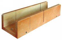 BoÎte à onglet. BoÎte en multiplis indéformable vernie, vissée, épaisseur 18 mm. 3 coupes, 2 angles : 45° et 90°