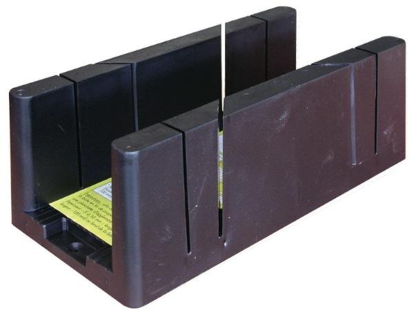 BoÎte plastique ABS.Permet la coupe des chevrons.4 coupes, 2 angles : 45°et 90°.Dimensions intérieures : 320 x 100 x 100 mm