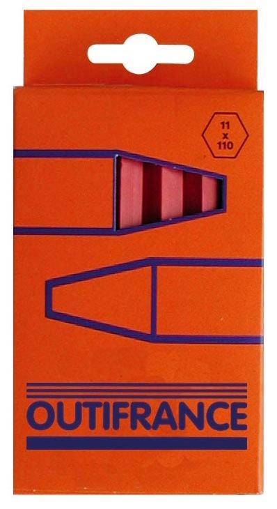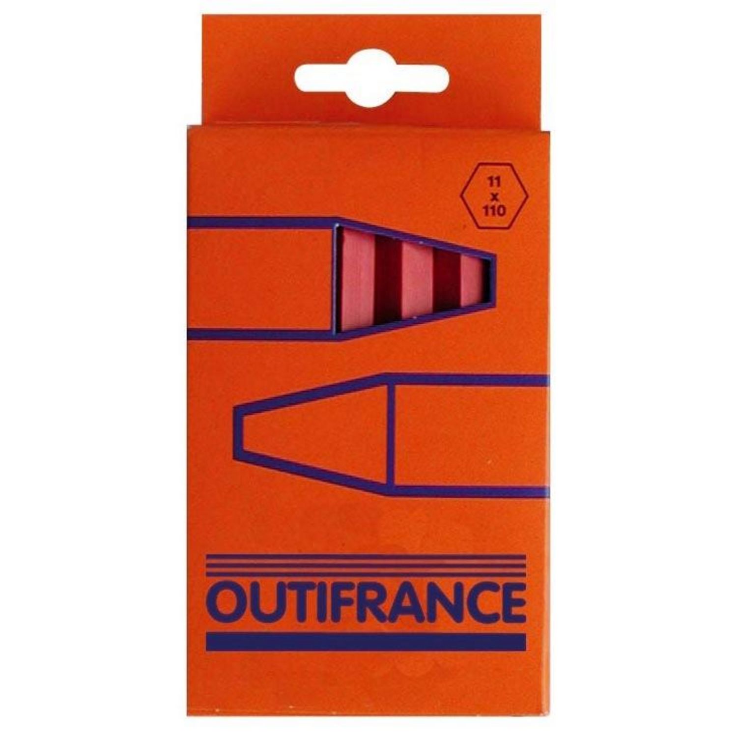 Craie grasse pour écrire sur toutes surfaces dans le bâtiment et l&rsquo,industrie, octogonale, livrée en boÎte de 12 craies ou sur carte de 2 craies.