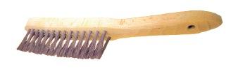 Brosse à manche : fils en V inox. Dimensions : 295 x 145 x 35 mm.