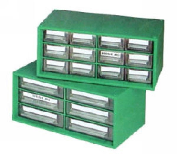 1 casier de rangement 12 tiroirs, corps en polypropylène. Tiroirs transparents.