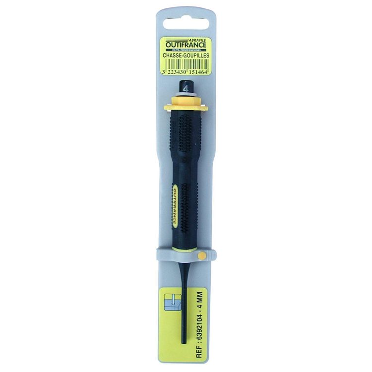 Chasse-goupille industrie. Longueur : 200 mm, diamètre : 5 x 75 mm.En acier chrome vanadium, bruni, gainage bi-matière anti-dérapant.