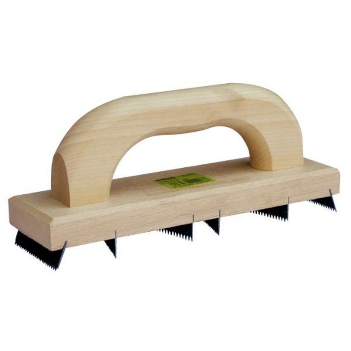 Pour le nettoyage des coffrages pour béton.Monture et poignée bois. Lames dentées en acier.Largeur : 70 mm