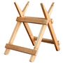 Chevalet pliable en bois, poncé et vissé. Piètement biseauté pour une bonne stabilité.