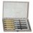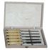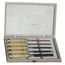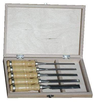 Ciseaux de qualité supérieure avec larges biseaux en acier au chrome vanadium. Livrés affûtés. Manches en bois avec viroles laiton. Coffret bois avec charnières et fermeture métalliques.Coffret contenant:5 ciseaux de 8/10/12/15/20 mm