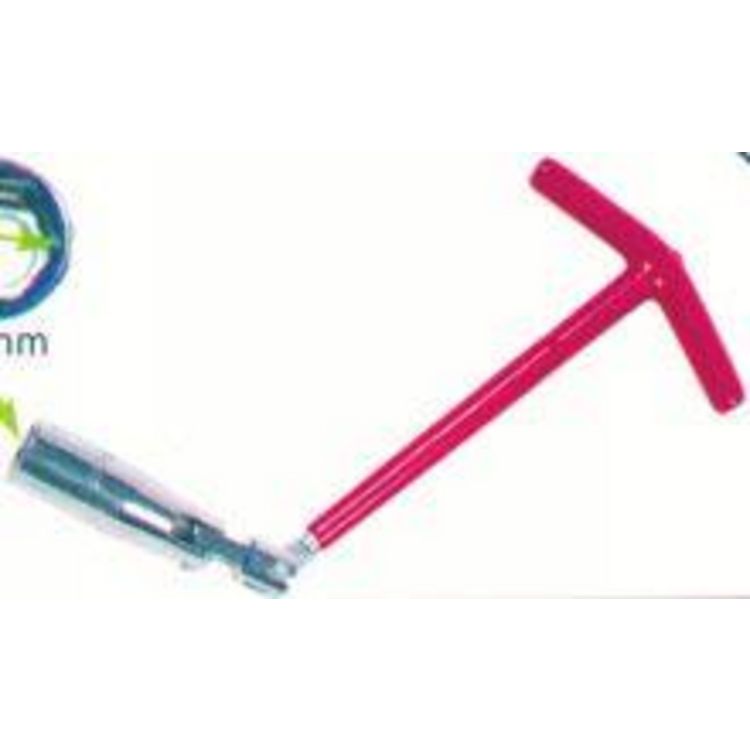 Clé à bougie articulée. Poignée en T, douille sur cardan.